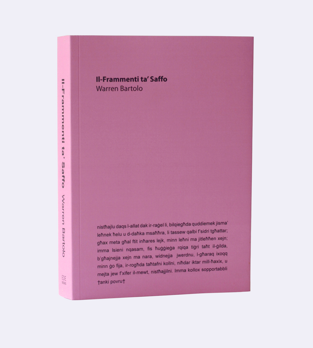 Il-Frammenti ta’ Saffo, Warren Bartolo jiġbor u jittraduċi l-poeżija ta’ Saffo mill-Grieg Antik għall-Malti. Il-pubblikazzjoni tinkludi wkoll Introduzzjoni, esej dwar it-Teorija tat-Traduzzjoni u l-Impossibbli, kummentarju dwar il-frammenti, u appendiċi li jinkludi l-iktar sejbiet riċenti tal-poeżija ta’ Saffo. Edizzjoni bilingwi bil-Grieg Antik u bil-Malti.